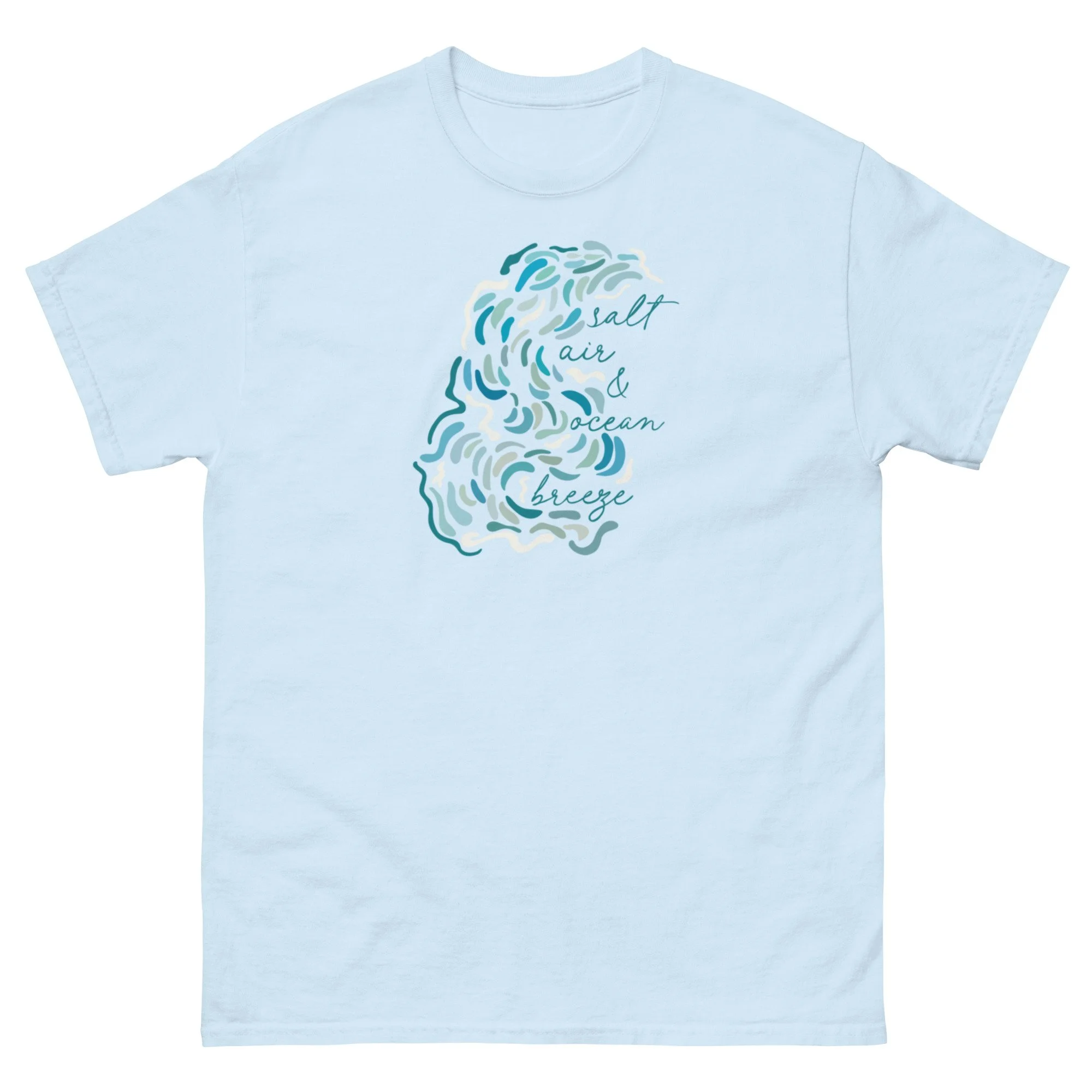 The Kam Tee features Kamilah Crystal’s Ocean Air design, inspired by the feeling of salt air, ocean breeze, and a beautiful current. Soft, breathable, and easy to wear, it blends creative expression with everyday comfort.